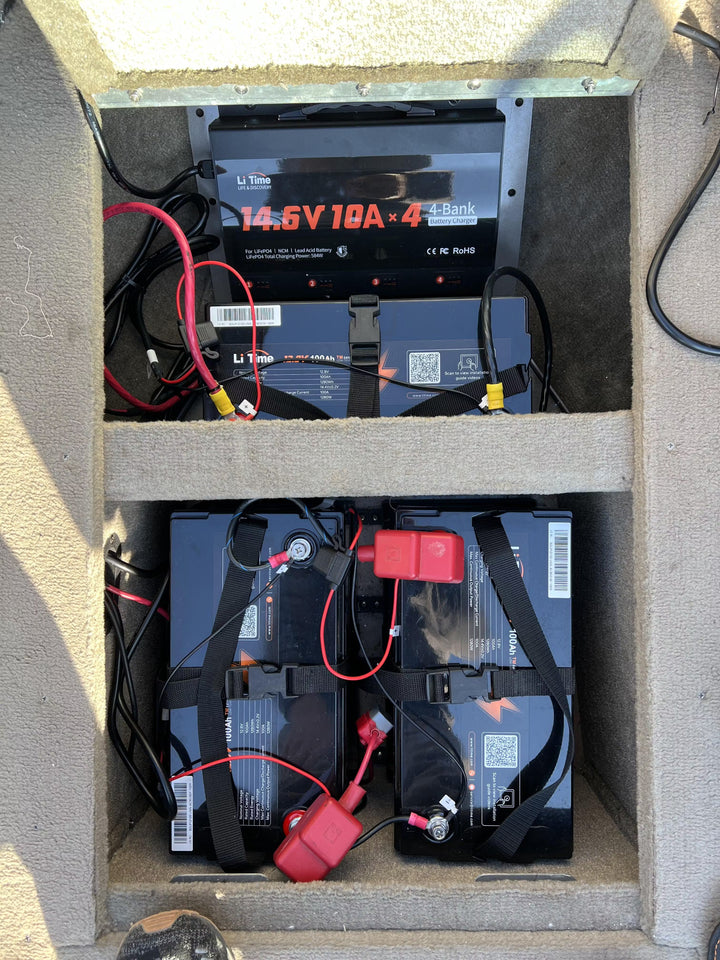 A 12V 100Ah battery stores about 1,200Wh of energy. To estimate runtime, divide this by your average load in watts. For example, a 100W load (lights, fridge, router, small devices) can run for roughly 10–12 hours on a quality LiFePO₄ battery like LiTime, which offers more usable capacity than an equivalent lead-acid battery.